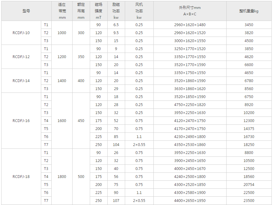 RCDFJ型強迫油循環自卸式電磁除鐵器適用于輸煤港口、大型火電廠、煤礦等對除鐵要求特別高的場所。用于懸掛在大型輸送皮帶上方,能處理煤中炮線等細小鐵件,對處理雜鐵,提高物料品位起到重要的作用,自動卸鐵,維護簡便,滾筒腰鼓形結構,具備自動糾偏功能,特制全密封軸承座,能夠適應現場粉塵大的應用場合。