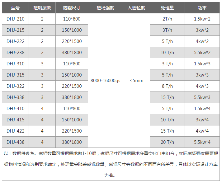 DHJ系列強輥干式磁選機是一種新型干選設備,可根據需求生產1-10層結構,實現物料的多次分選。該機對粉礦率較少但又均勻的中小顆粒狀礦石分選效果好,生產效率高,操作簡單方便。