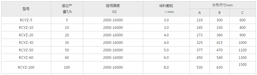 RCYZ型垂直管道式永磁除鐵器是一種以永磁材料產生強大磁場吸引力的節能型設備,內部采用釹鐵硼材料組成的環狀磁系,圓錐形體,結構合理,磁場強度高。可與固態原料輸送設備連接,活動式門扣,處理鐵質方便,適用于食品、面粉、陶瓷、化工、水泥、建材、石英砂等行業各類固態小顆粒和粉末狀物料中除鐵。
